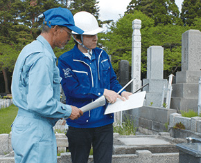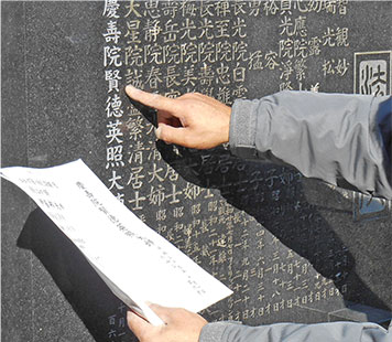 彫刻する石の文字の大きさ・字体を確認させて頂くために、墓所にて現場を確認し拓本をとらせて頂きます。