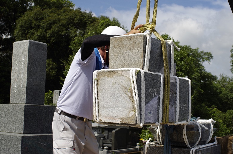 重い墓石を無理に動かそうとすると、墓石が傷ついてしまうばかりか大きな怪我をする危険があります。